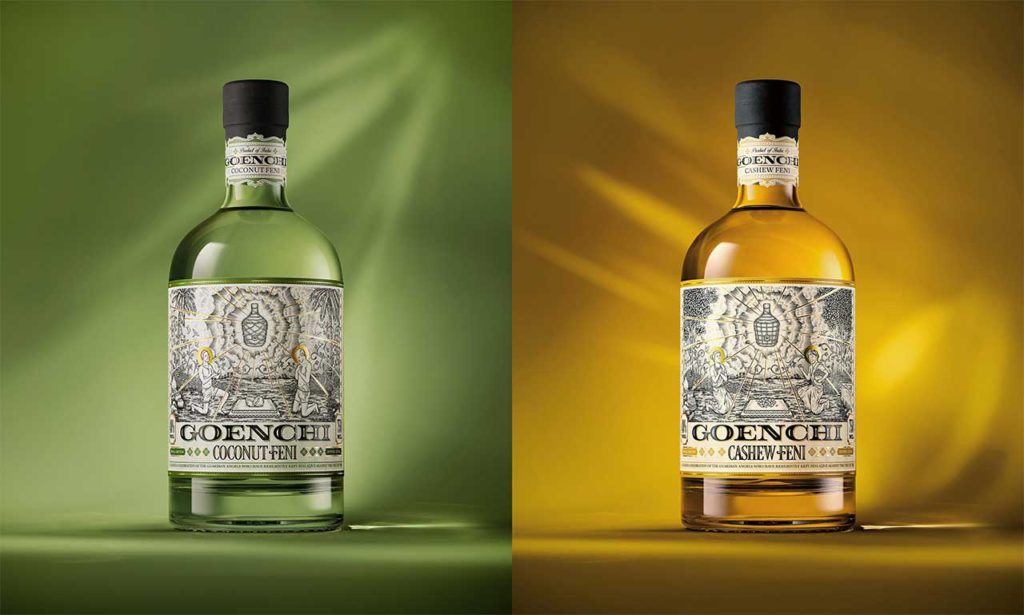 El Feni de coco de Goenchi se destila en un alambique de cobre tradicional a partir del néctar de las flores de coco después de una fermentación lenta y natural. Obtendrá notas refrescantes de agua de coco tierna, sal marina y chiles verdes, con un distintivo final floral y dulce. Su feni de anacardo se destila del jugo de manzanas de anacardo de Goa. El feni tiene notas de yaca tropical, piña, pimiento verde y queso de guayaba.